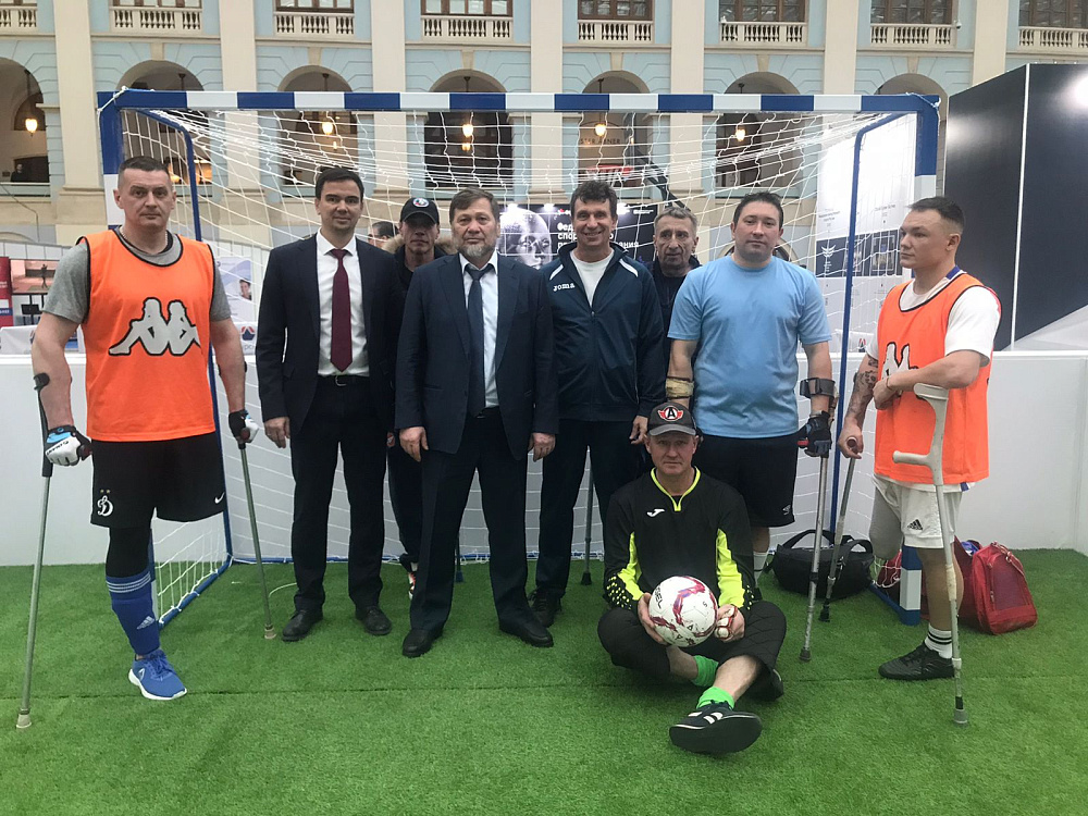 Олег Матыцин провел серию пенальти с футболистами-паралимпийцами, а также сделал общее фото с командой.