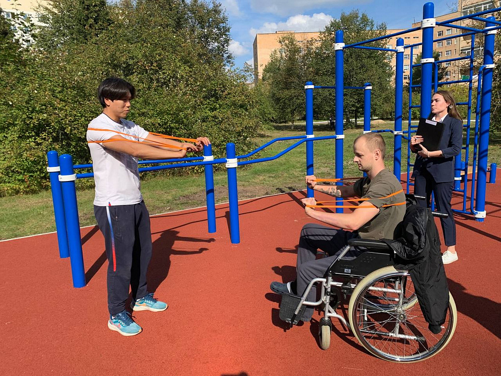 Кроме этого, на спортивной уличной площадки специалистами Паралимпийского комитета России были организованы консультации по использованию физических упражнений с эластичными лентами, необходимые для самостоятельной реабилитации и соревнования по воркауту.