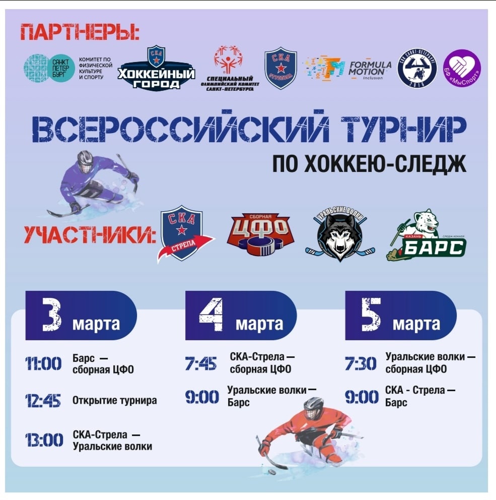С 3 по 5 марта в Санкт-Петербурге пройдёт Всероссийский турнир по следж- хоккею.